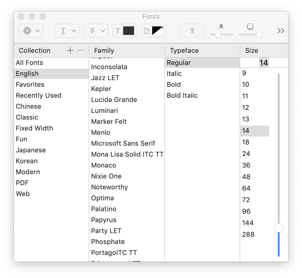 It's pretty clear Apple's apps stink when the drop down menu and font palette of the same app can't even agree what's open.