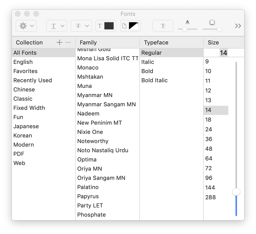 But if you open the fonts palette, you suddenly see a bunch of them.
