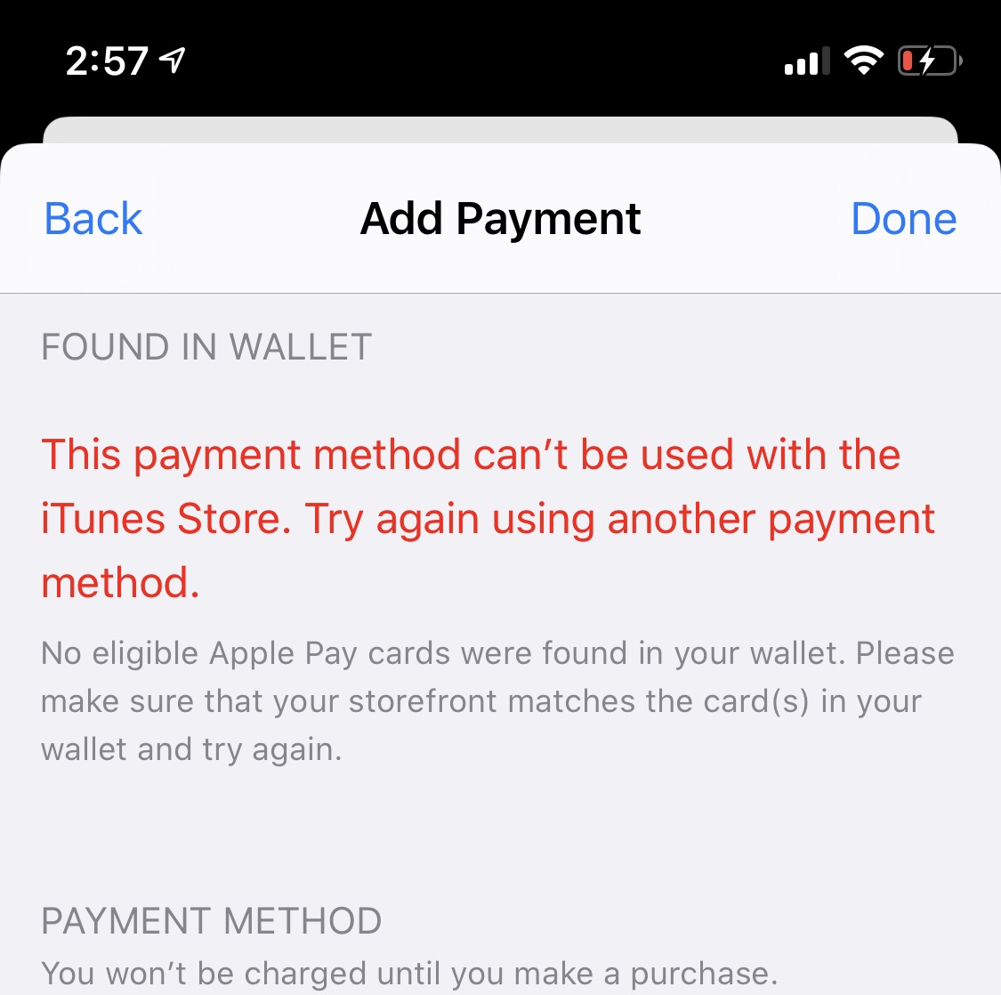 Also, is the card registered with the same name and address associated with your iTunes account, and issued by a bank in the location where you are?