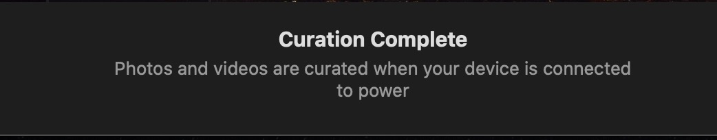 Under my photos by year there is a cube which spins and it says: Curating Best Photos; Composing Layout; Gathering Favorites; Analyzing Scenes; and Detecting Duplicates.