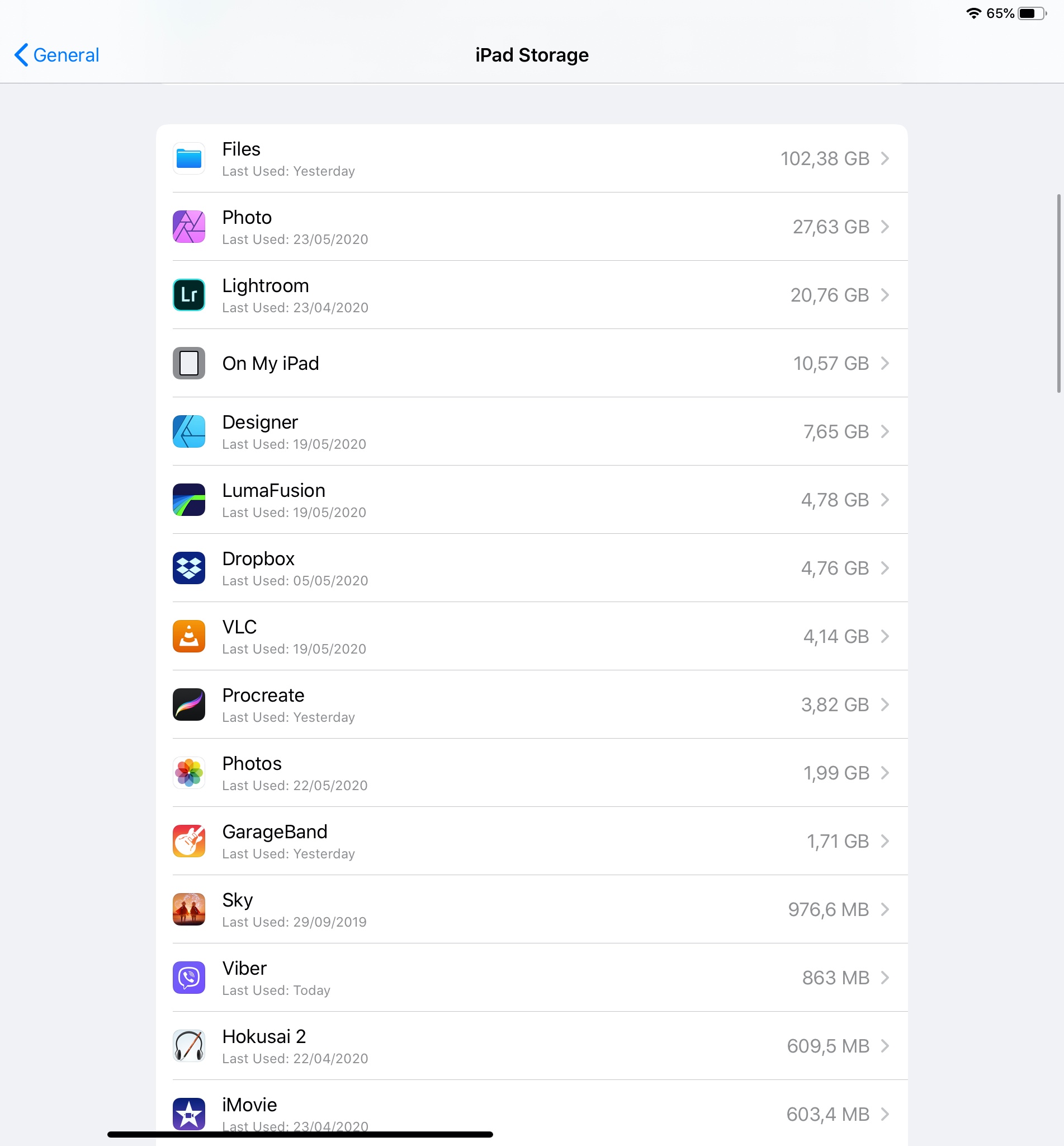 If this issue has been already resolved, I apologize. I have a 256 GB iPad Pro (2018). In the last couple of months I noticed that I’m running out of storage and the biggest “consumer” is the Files app (more than 100 GB). The problem is that I can’t check which files take so much space. Is there any way that I can see those files? Will it do any good if I try to offload the Files app? Thanks in advance your help. Peter