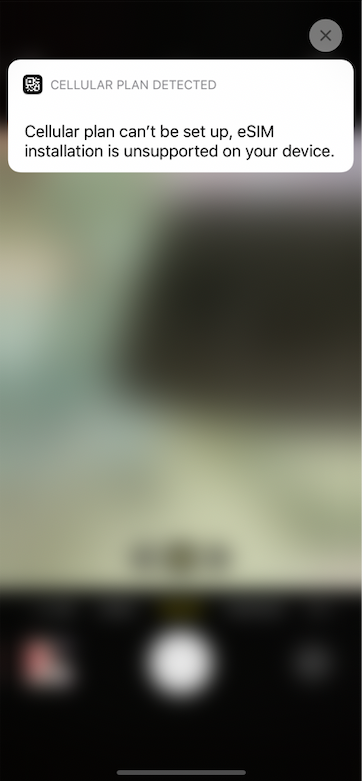 When I try to add a new eSim via ATT QR Code my iPhone gives me the following message "Cellular plan can't be set up, eSIM installation is unsupported on your device"