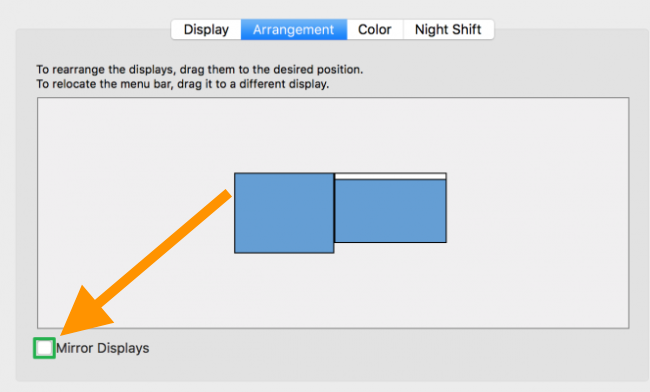 With two displays connected to the Mac (eg a MacBook built in display and a projector)