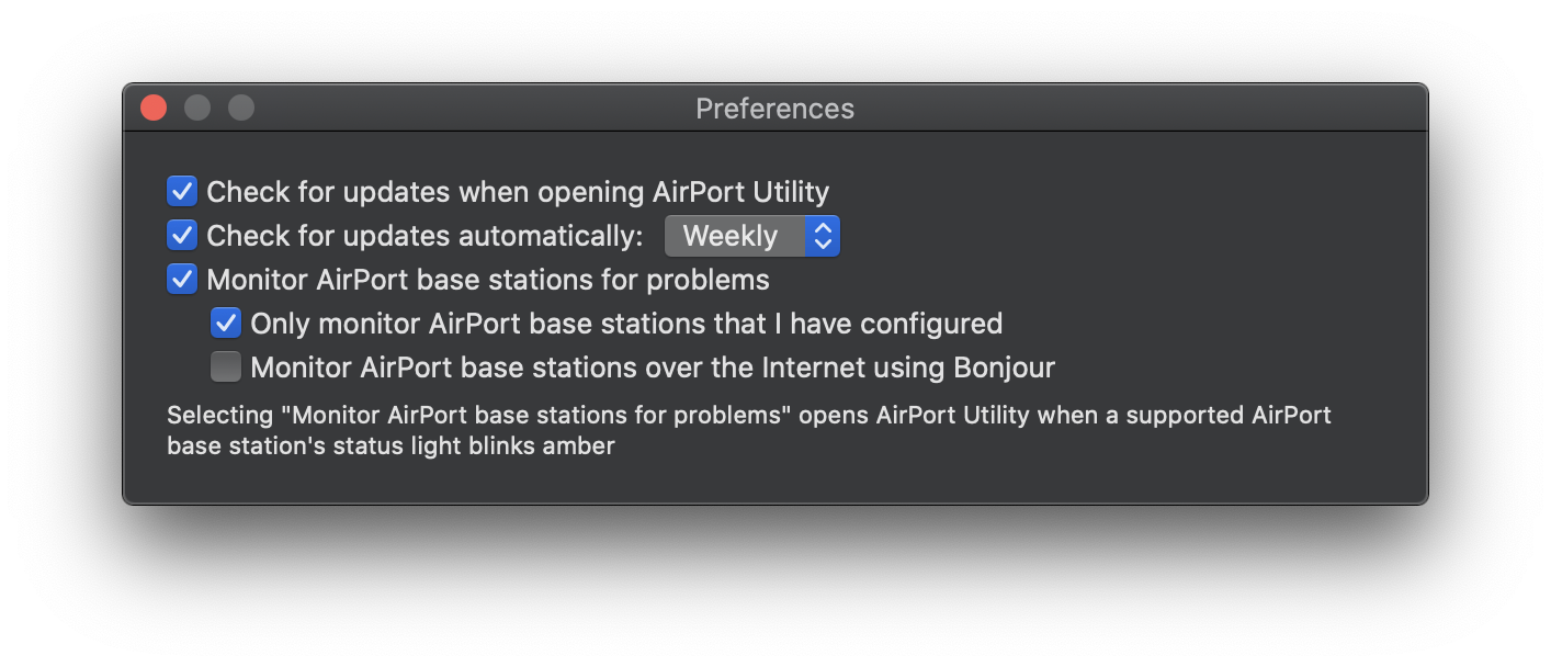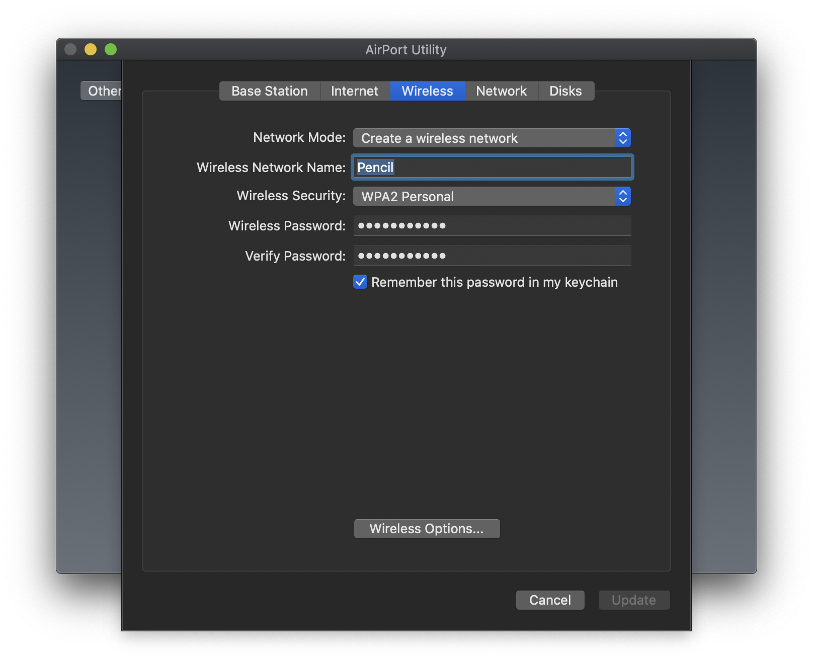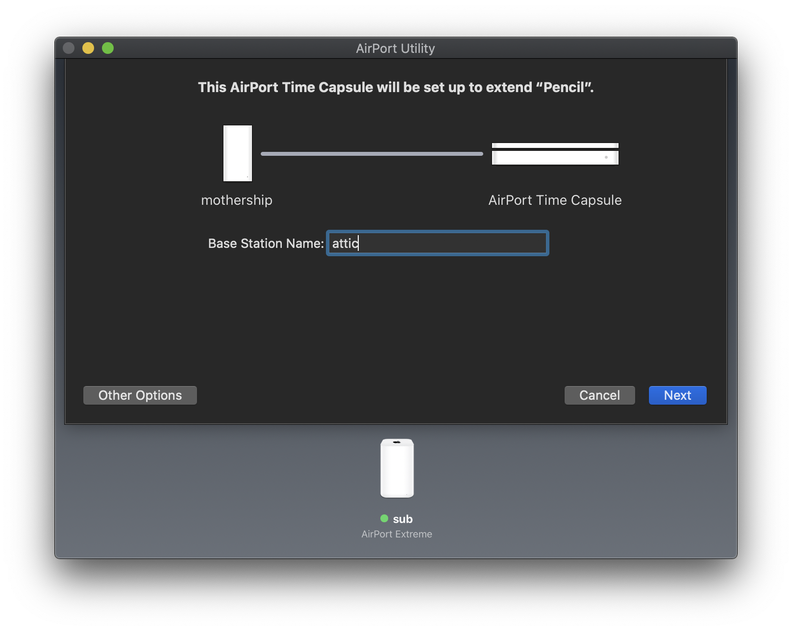 - Open AirPort Utility: I'm connected to the right network, and shows the pizza box as my access point.
