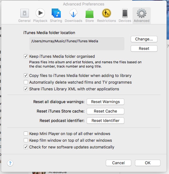 This was never an issue, but now when I sync my iPhone or iPad to my iMac, the ripped music isn’t transferred over, though it can be seen and played on my iMac. I noticed that in the iTunes preferences The iTunes Media folder location is shown as /user/myname/music/iTunes Library/iTunes Music.