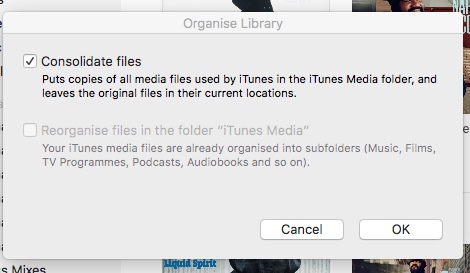 When it came to step 8, iTunes would only allow me to Consolidate Files, the Reorganise Files option was greyed out. Again I have attached a picture so that you can see what iTunes said.