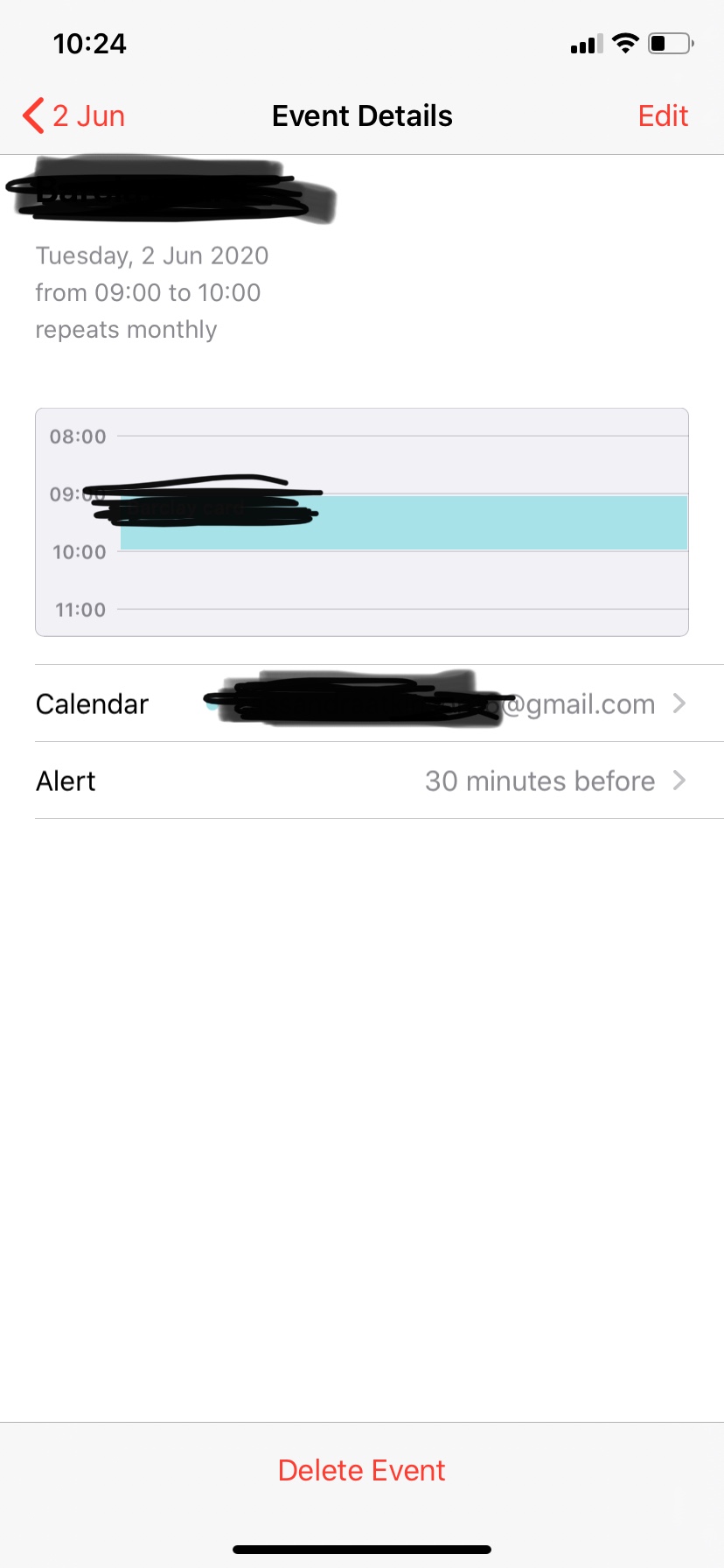 Calendar delete