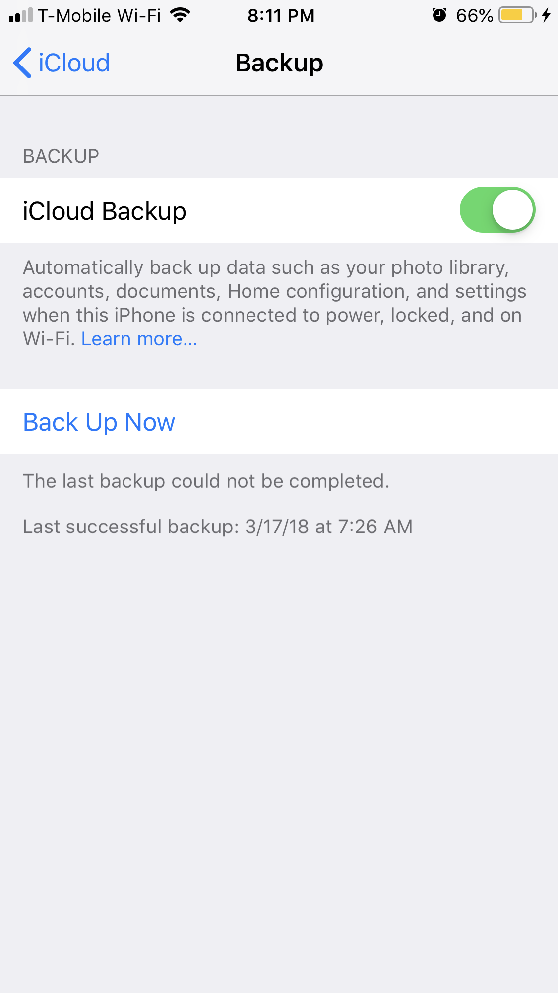 So said I was out of space so I purchased iCloud space for $2.99 a month. Tried backing up everything on iCloud and it said it could not complete. I’ve tried a couple of times now. I’m at home, connected to WiFi, and plugged in. Still says cannot complete.