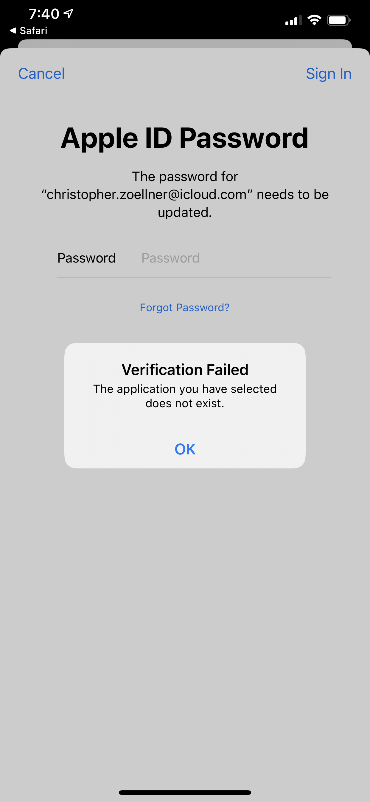 When I try to sign in with my Apple ID it say this