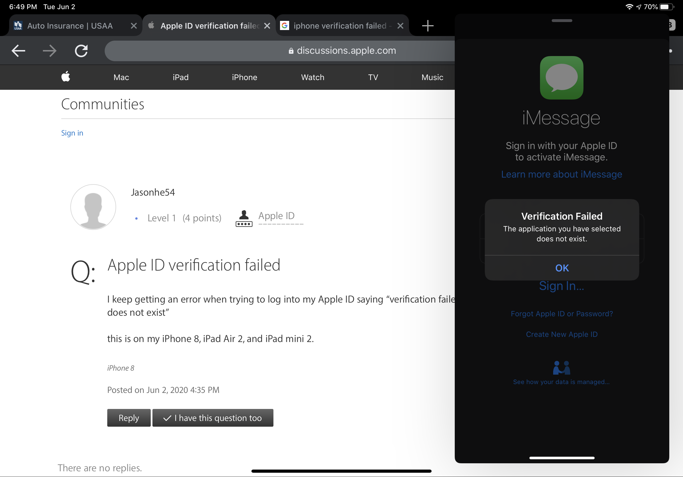 I keep getting an error when trying to log into my Apple ID saying “verification failed, The application you have selected does not exist”