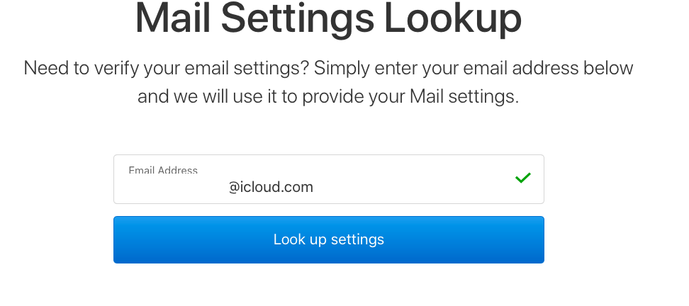 Enter the Apple ID address say example1@icloud.com and click on look up settings .