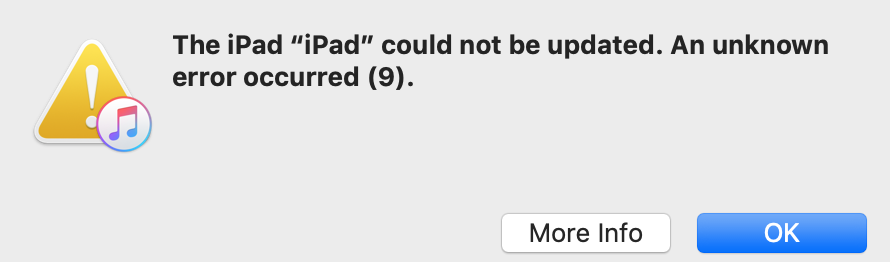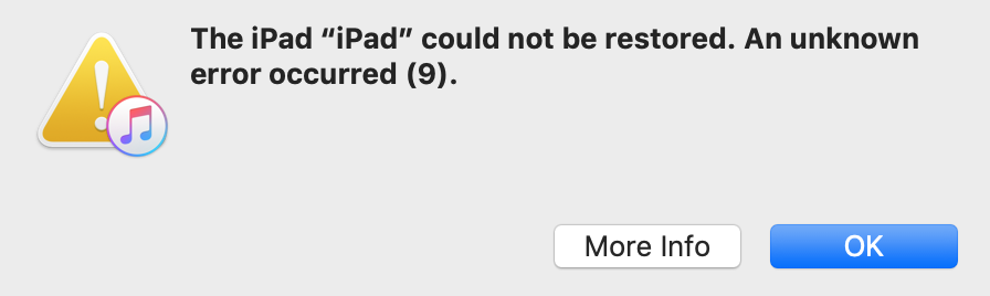 Therefore, I had to download the newest version of iTunes on a Windows machine to be able to update/restore the iOS on a brand new iPad. A bit ironic that I would have to depend on Windows to fix my Mac issues, never in a million years would I have thought that to be necessary.