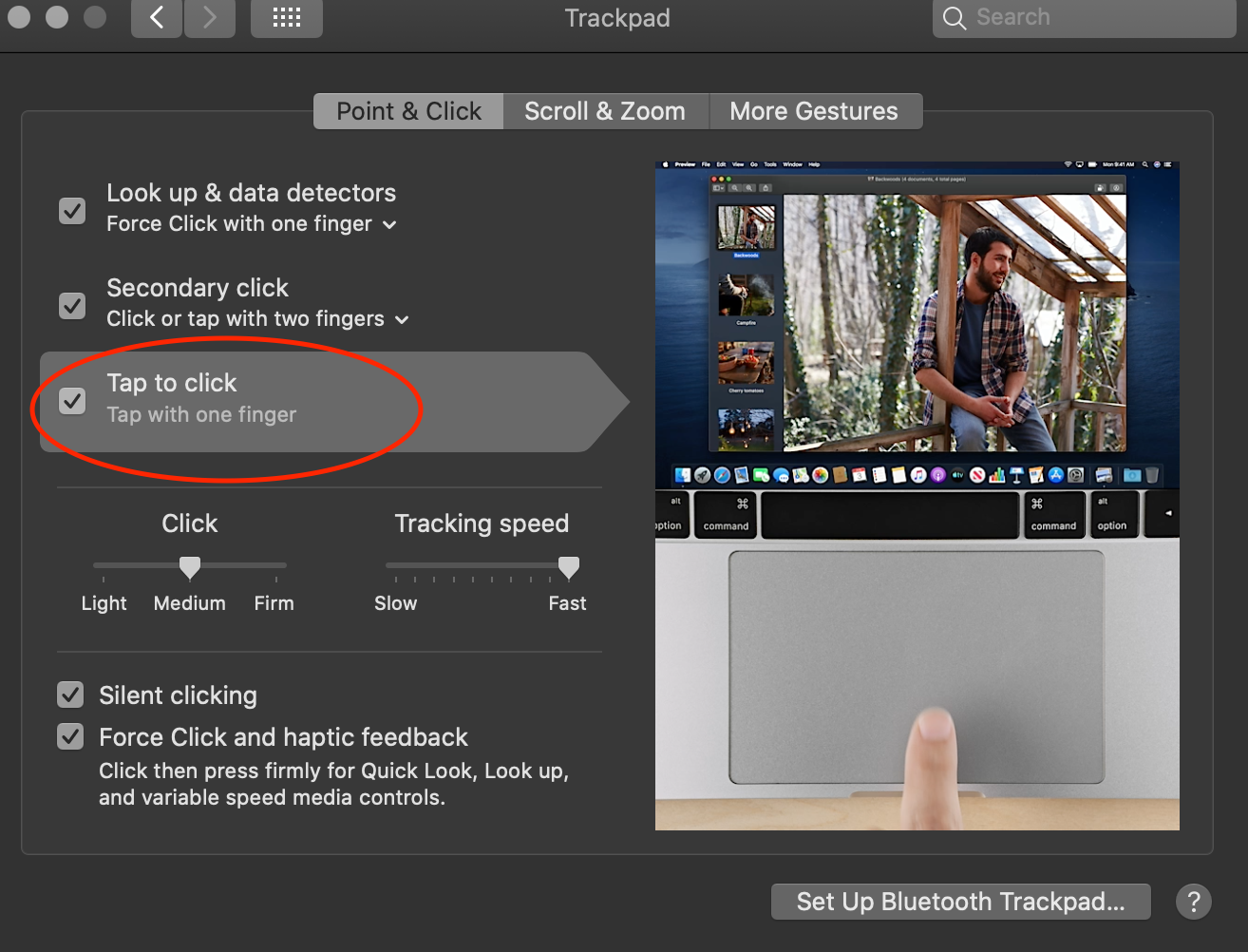 Anyway, my old computer (and I am 100% sure it was this way on this computer too when I first started it up but then when I altered one option on the trackpad it stopped working) I could drag the cursor to the corner of a window where it becomes the diagonal double arrow and double tap (I'm pretty sure with two fingers) and then it would let me resize the window. Also, when you are selecting icons on your desktop you could perform the same action and move the icons around. Lastly, I am POSITIVE I could do this when I first started my computer to move the icons to customize the control strip. (I can still do all these actions by force clicking the track pad and holding it while I move, but I don't want to do that)