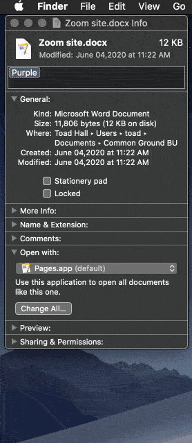 You can set a file to be opened by a selected app by bringing up the Info pane for that file (Control (right) - click on the file and select Get Info from the contextual menu). In the Open with section of the Info window select the app you want to open it with. Then double clicking on the file will open it with that app.