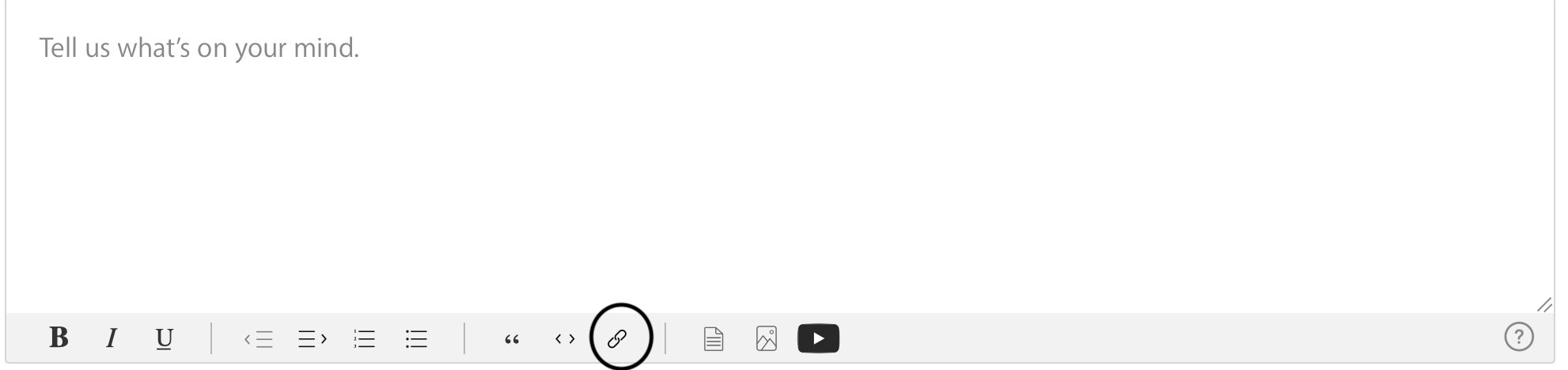 After starting a reply, select the "Chain link" icon at the bottom of the reply window. Then paste the link into the space at the bottom of the window. Tap the "Return/Enter" key to insert the link.