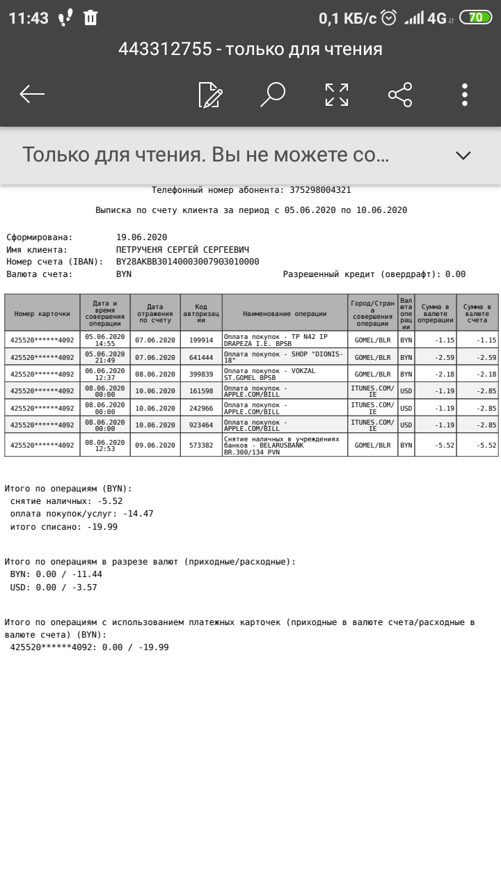 Добрый день, у меня украли деньги с карты, как и каким образом - не известно, украли с карты: 4255 2003 0602 4092, и я не знаю что делать, в банке ничего толкового не сказали, только лишь то чтобы я попросил помощи у вас, пожалуйста, помогите вернуть средства украденные, по информации сказали что было куплено на неизвестный iTunes ID 3 платных подписки, я не знаю что делать, помогите пожалуйста
