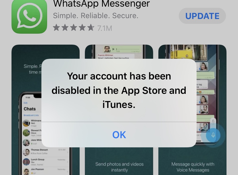 If you see a message that says 'Your account has been disabled in the App Store and iTunes' - Apple Support.
