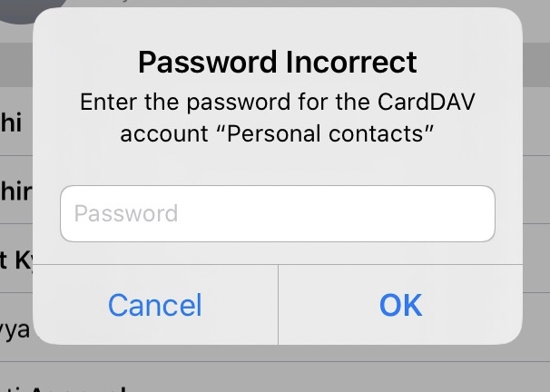 I am getting pop up for incorrect password for cardDAV “personal contact” but i have not setup any carddav and i dont know what that means. Is is some kind of hack