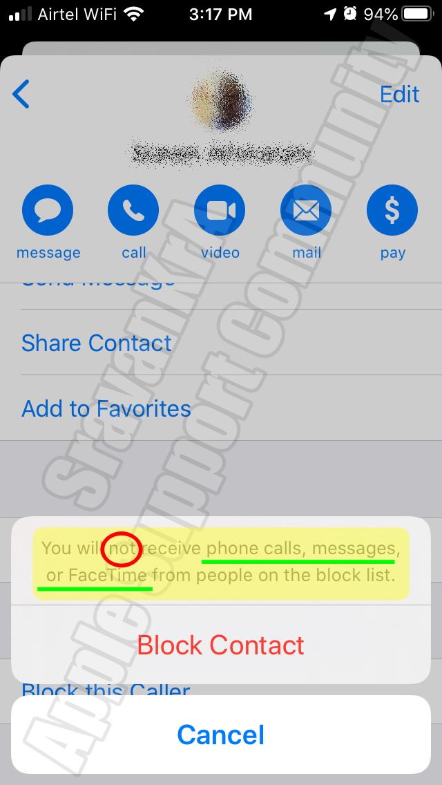 If you block a contact then you will not receive messages, Calls and FaceTime from them