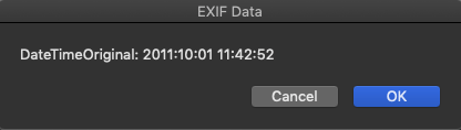 - A dialog will appear showing the internal date (DateTimeOriginal) that the picture was taken.