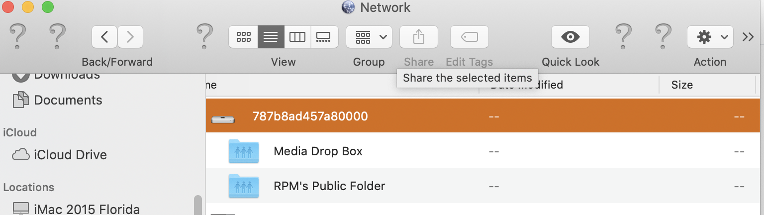 I was looking in my finder and saw a shared folder under Networks that I did not recognize. It is pictured here. If I click on it, does not allow me to see anything as it says that I do not have permission. I have no idea what it is or how it got there but I do not recognize the name either. I do not have file sharing checked on my computer. It is showing in both a late 2011 iMac running High Sierra and on a late 2015 iMac running Catalina. I have looked all over on how to remove it but cannot find a decent answer. Help Please.