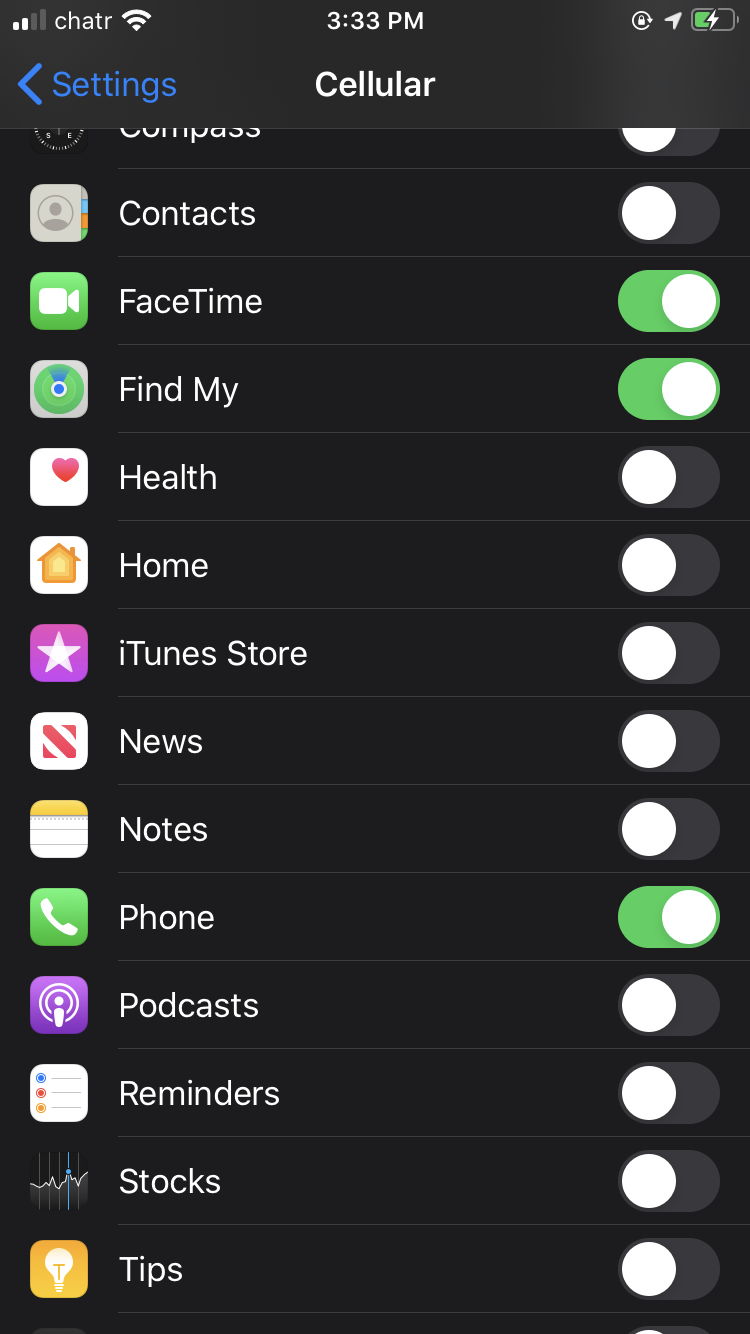 I’m having problems trying to find the iMessage listed on Cellular Data. It’s usually located under the Phone then all of a sudden it’s not there anymore. I turned off wifi, cellular data then restarted my phone and still got nothing.