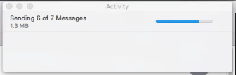 Trying to help solve a problem with my dad's Mac that has stumped me. Frequently — several times a month at least, possibly more — Mail has a "Sending Message" notification at the bottom of sidebar for just hours on end with a large file size, like this: