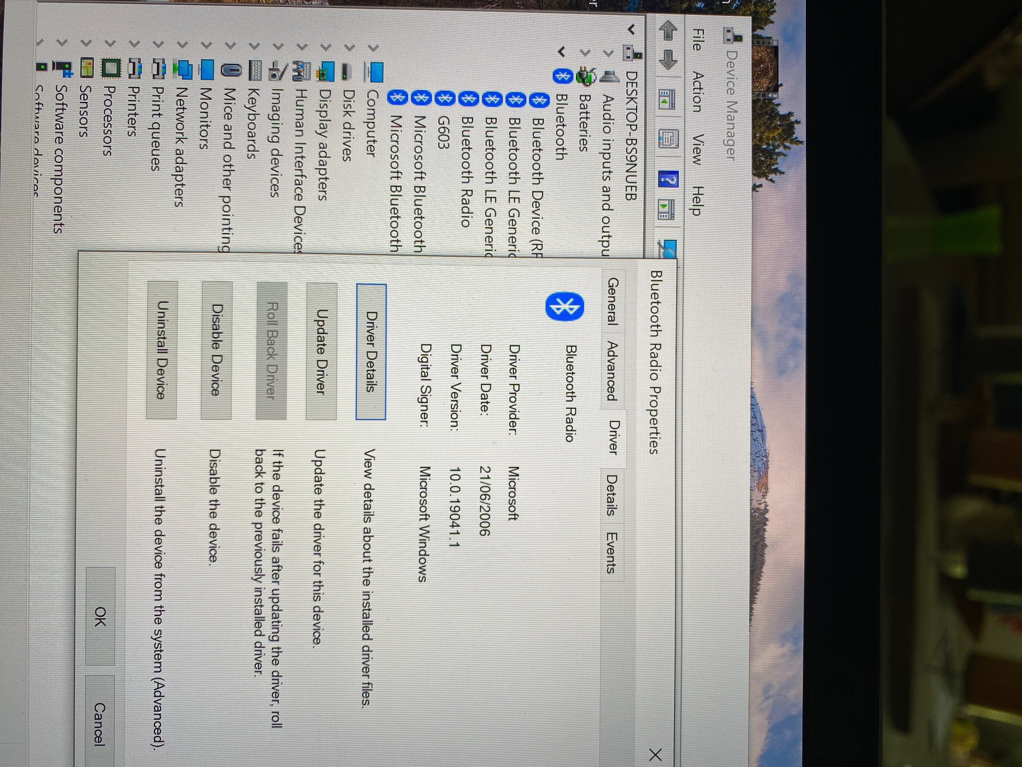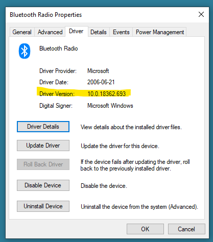 The thing is, I do not have this tab, and it is also not to be found in any other Bluetooth device listed under 'Bluetooth' in device manager.