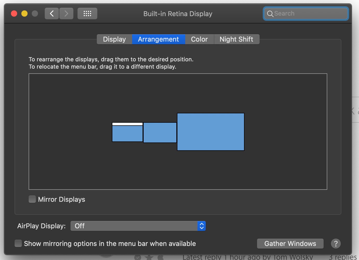 I saw where you explained this very clearly Luis ... but I couldn't quite translate it to what I'm trying to do. I want my MacBook Pro as the left screen, FCPX app as my middle screen, and the Full Frame of the Viewer Window on my third (right screen). That way my MacBook is used for all the ancillary work, like mail, web, Affinity Photo et al. – over on the left out of the way.