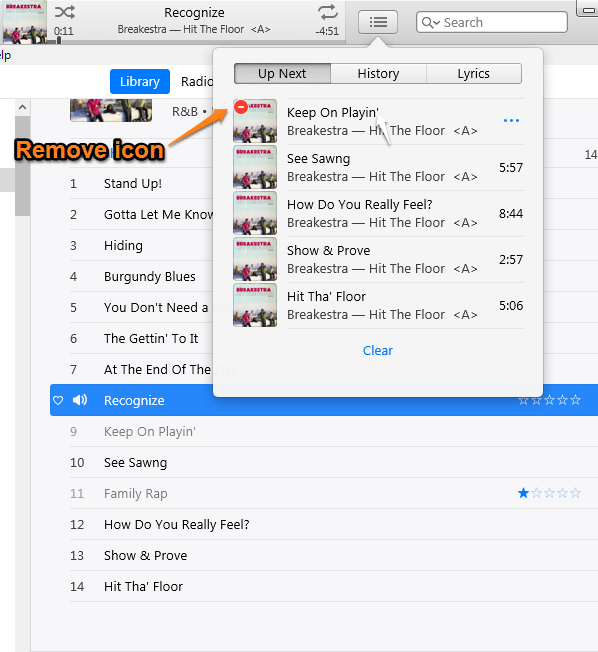 You can see in the screenshot above, that Keep On Playin' is still in the Up Next list, but Family Rap is not.