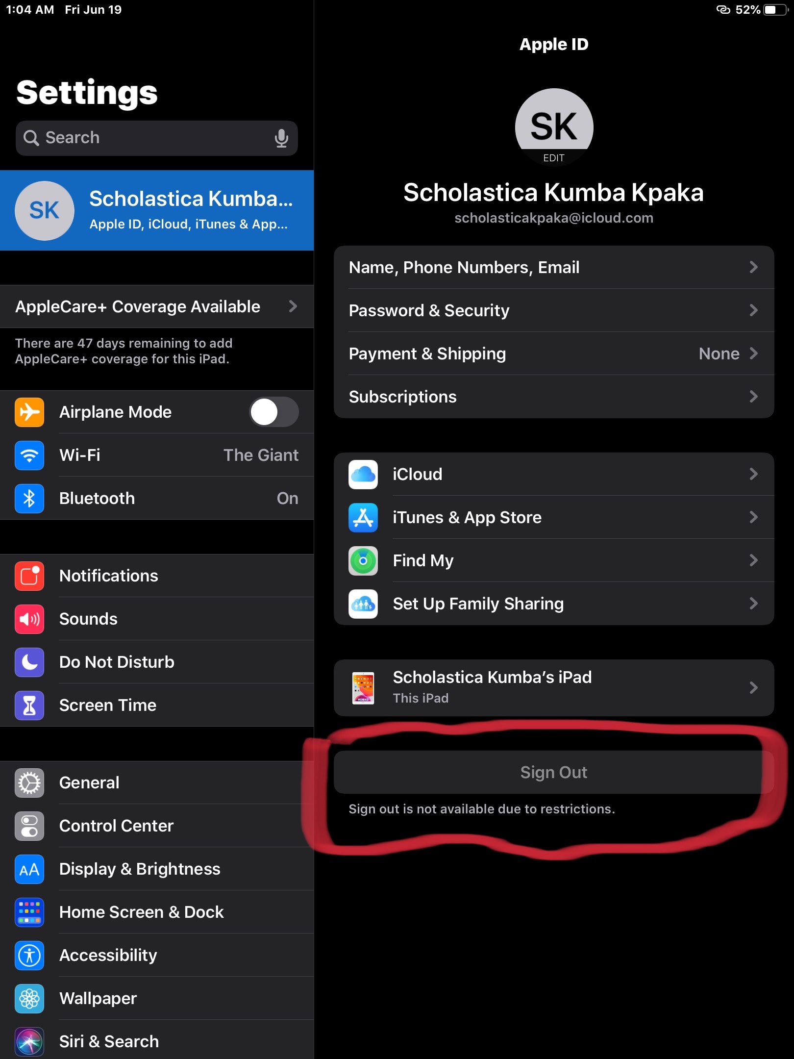 I want to sign out my ipad but it says, sign out is not available due to restrictions. Can you help what the restrictions are?