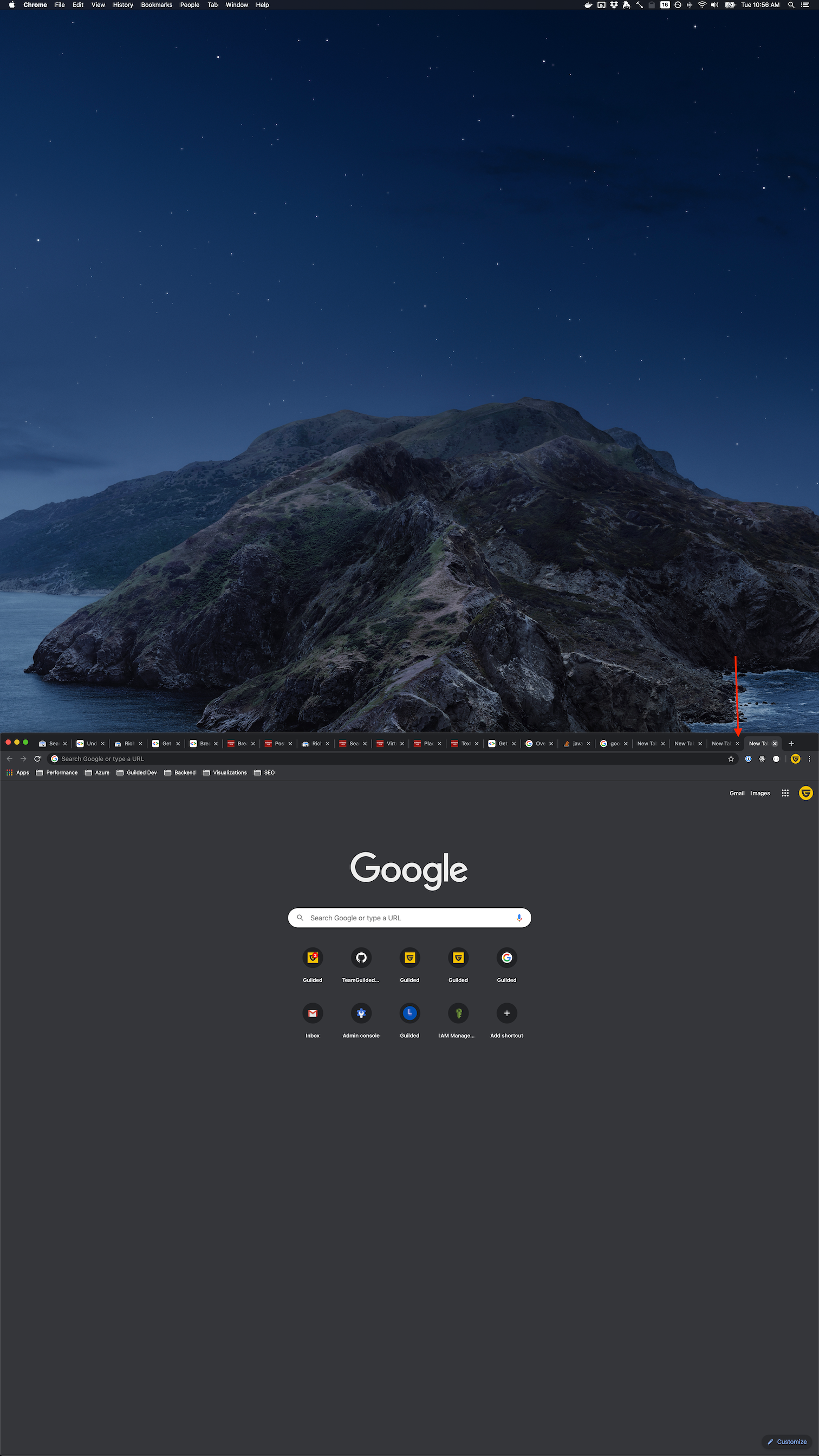 My mouse is where the red arrow is, and you can see the x in the tab is highlighted (x to the left of "New tab"). The OS thinks the mouse is hovering over the x, however my mouse is ~50 pixels to the left.