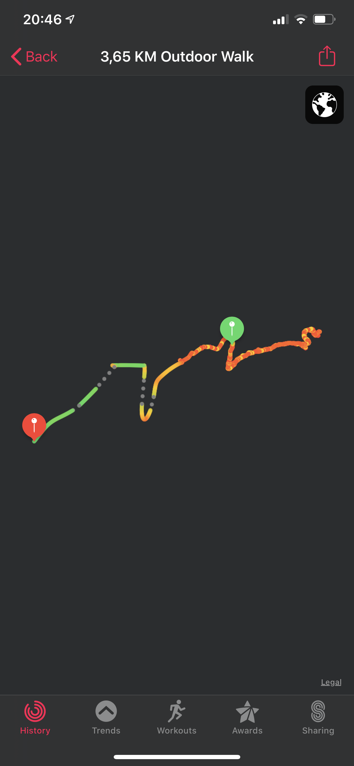 Workout map route colors explanations: