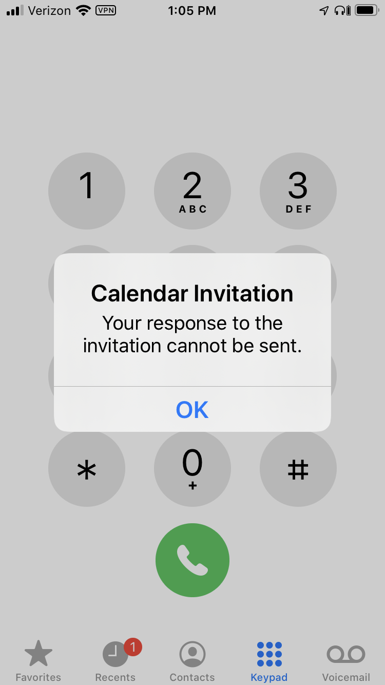 Thanks for coming to Apple Support Communities for help today with this pop up message "Your response to the invitation cannot be sent".