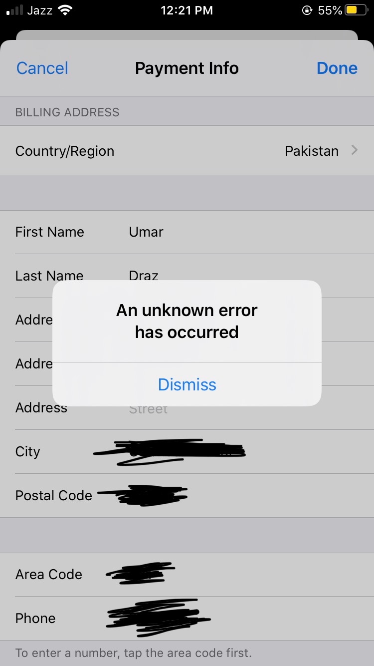 I am trying to upgrade my iCloud storage package from Free to 50GBs/month, but there is no success and the following message appears at my screen.