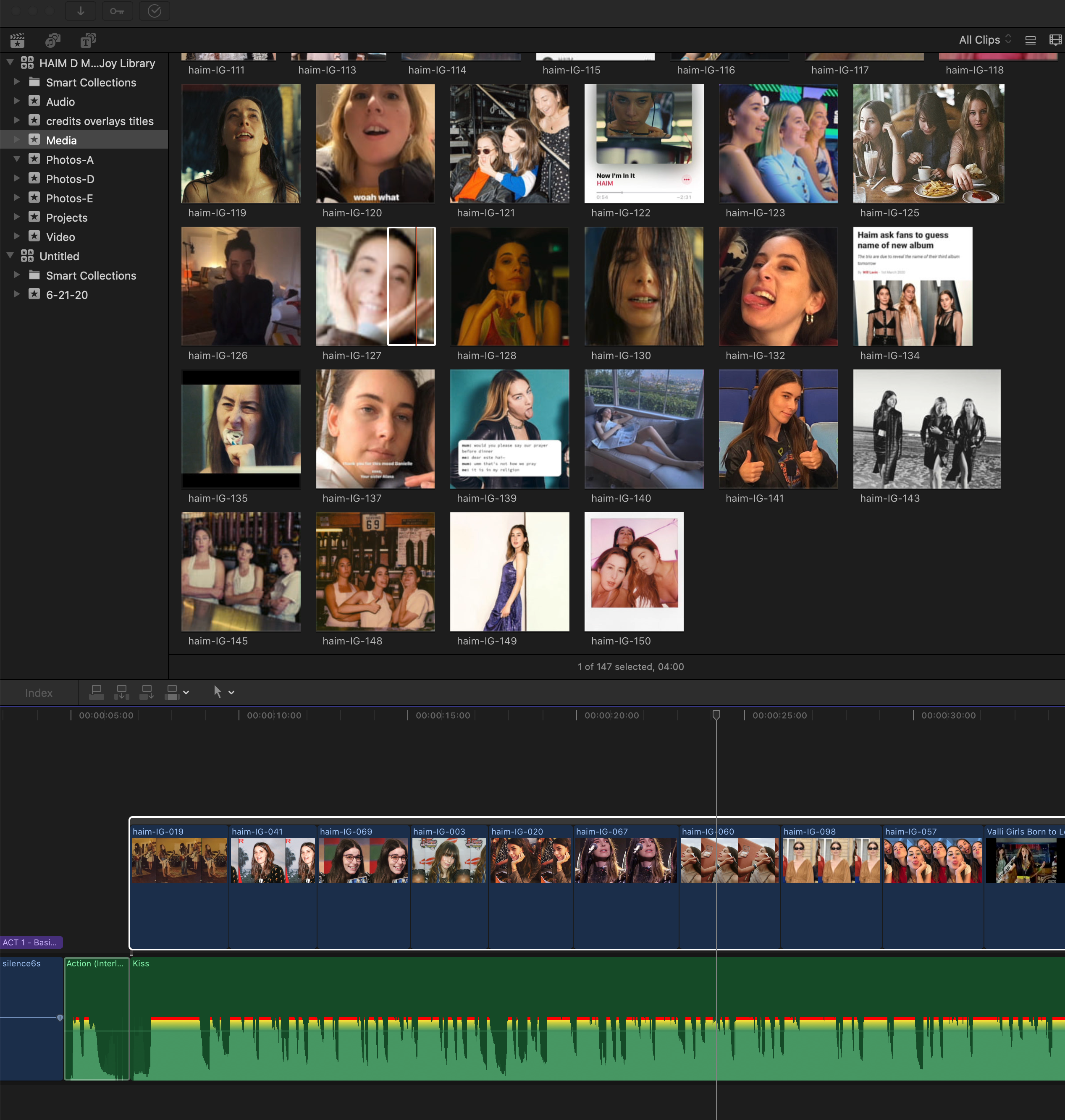 The icons below change the solid blue and green areas inversely. When the images fill the video storyline fully (ie no solid blue under the images), the audio waveform disappears and the audio storyline is 100% green. When the waveform is taller, the images in the video shrink and the solid blue area grows vertically.