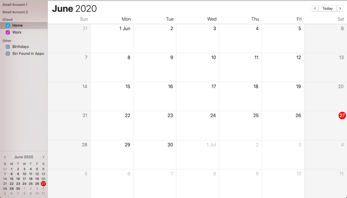 I don't know why iCal does not support delegation to my Gmail Accounts anymore. And even my iCloud Account. The following picture shows it. The sidebar doesn't show the accounts' emails. I'll explain more about iCloud later.