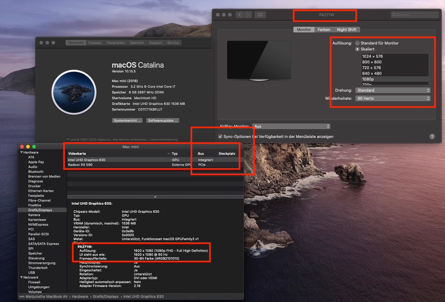 Connected the same NEC monitor with the Mac mini through a DVI-HDMI cable and surprisingly I did not get the supported 2560x1440 resolution on the monitor, rather only 1920x1080 (although I have a eGPU connected to Mac mini). see attached snap "Mac mini+Ext display.jpg".