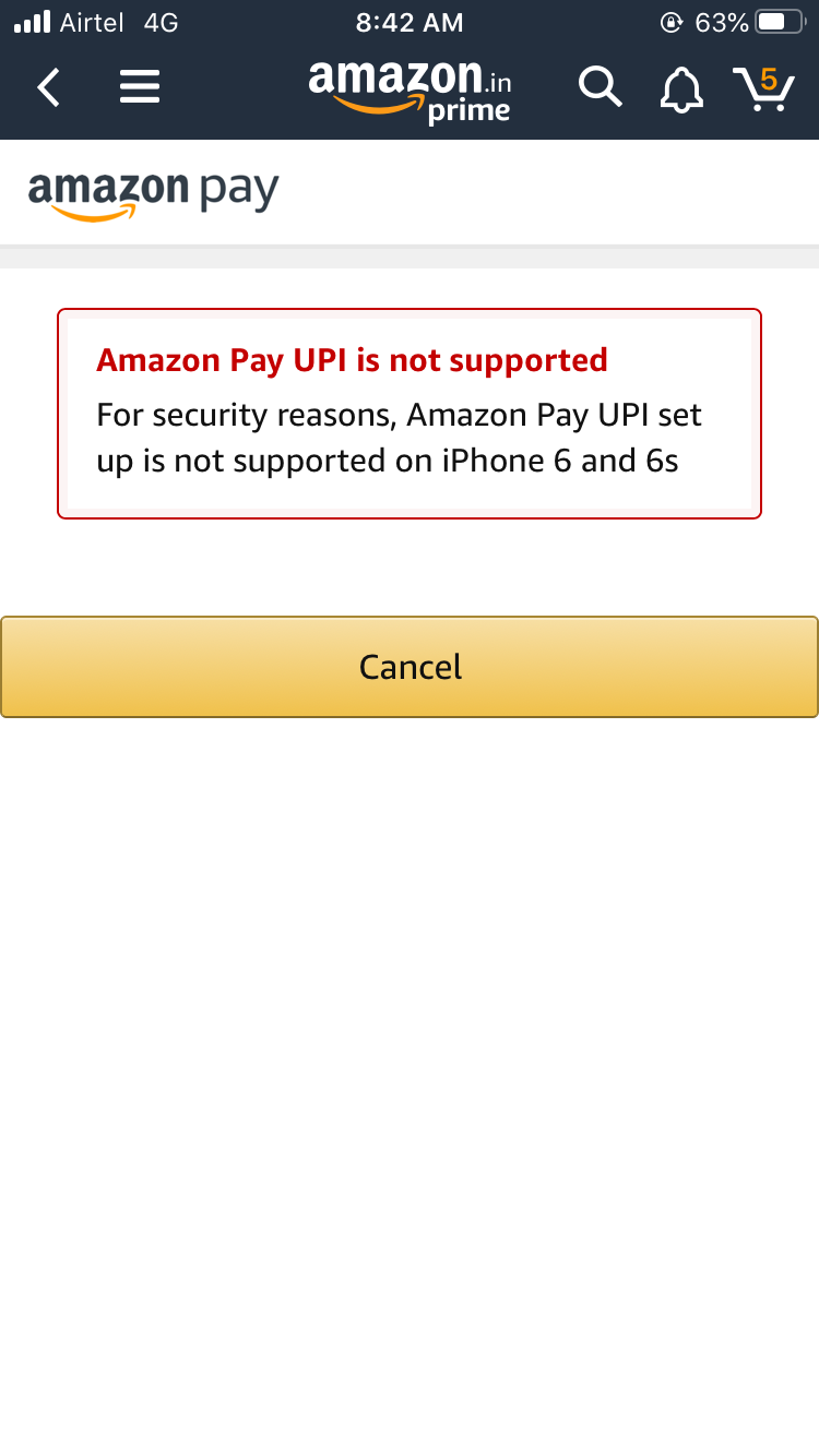For Security Reasons, Amazon Pay UPI Setup is not supported on Iphone 6 and 6S