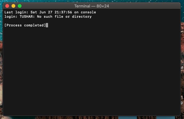 If that doesn't help, please return to your Terminal's Preferences, and instead of using the default login shell, select Command (complete path), and make it look like my example. In other words type /bin/bash where yours shows TUSHAR.