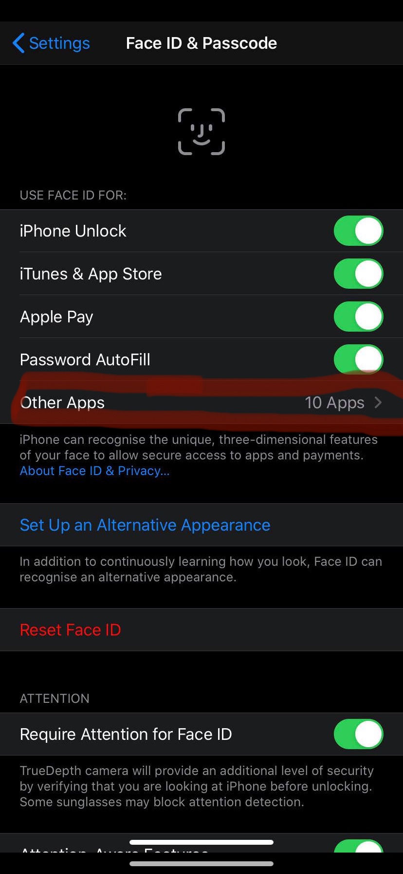 My IPhone 11 doesn’t give me the option to turn on Face ID for my apps under Settings - Face ID and Passcode - Other apps