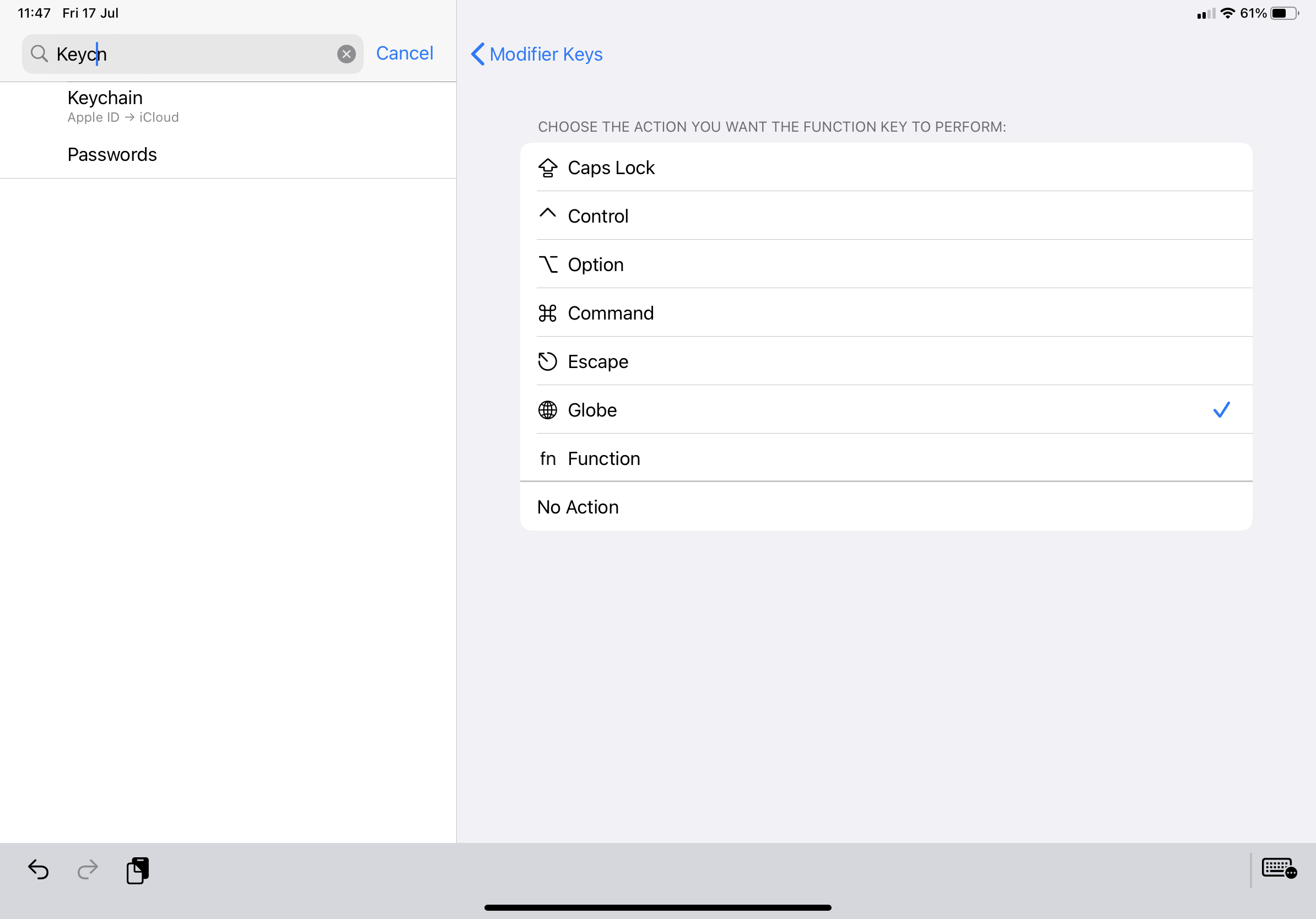 Fn key on external Apple Bluetooth keyboard not working as expected on iPad OS 13.5.1
