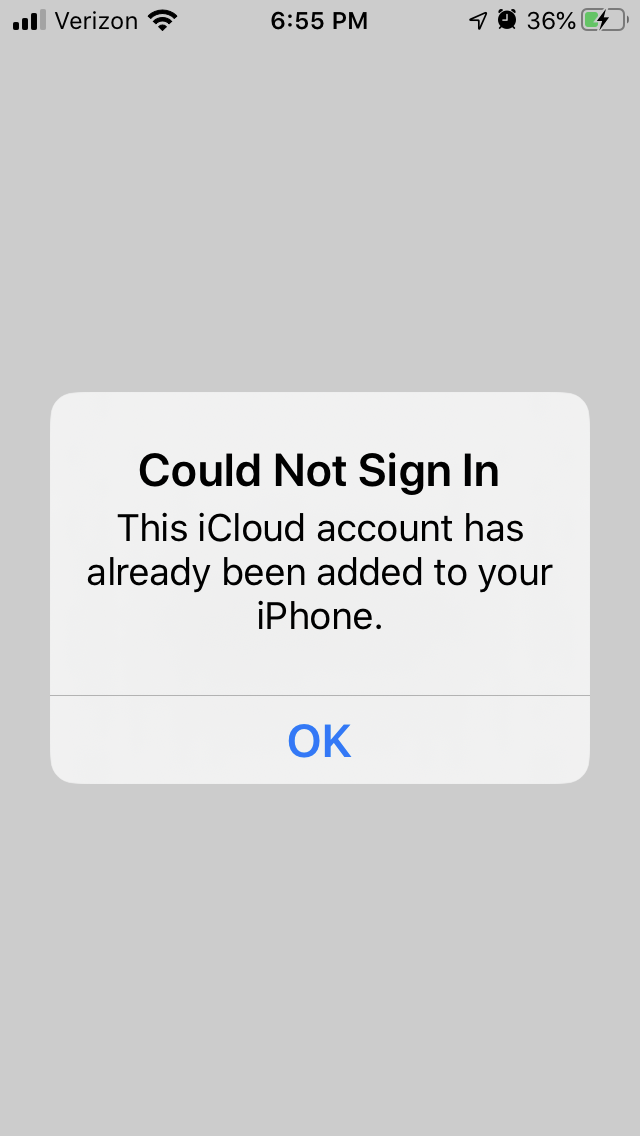 new iphone SE will not complete setup. It says iphone already added to icloud but will not actually log in