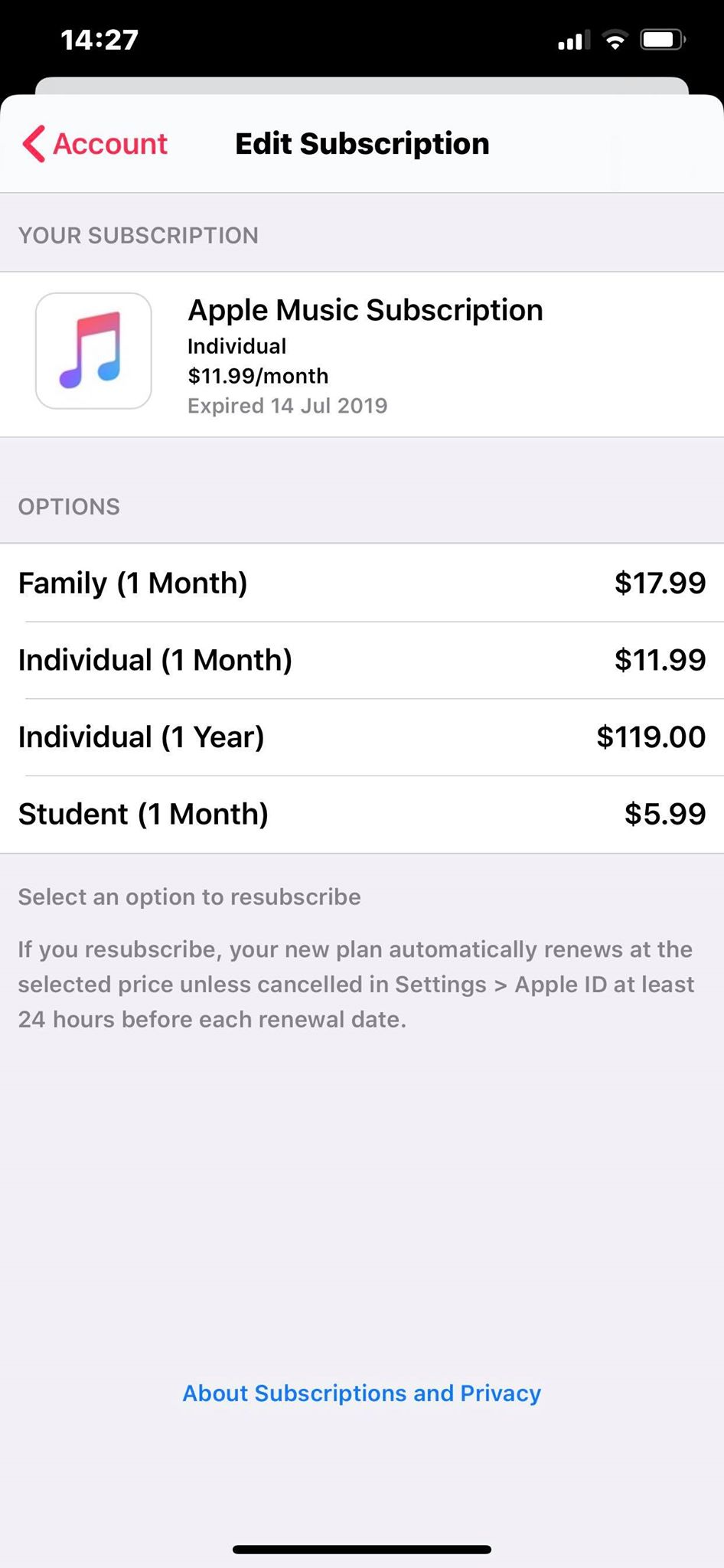 i cant unsubsrible my apple music, it doesnt have unsubsrible button and i have been paying for months without using it.