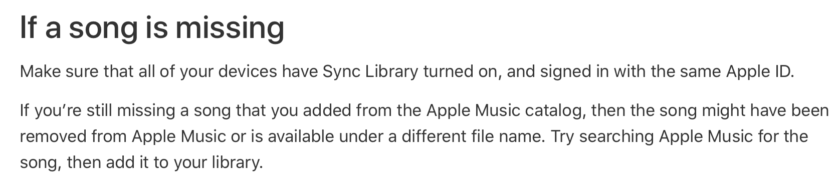 View This Site: If Songs are Missing from your Music Library After you turn on Sync Library - Apple Support