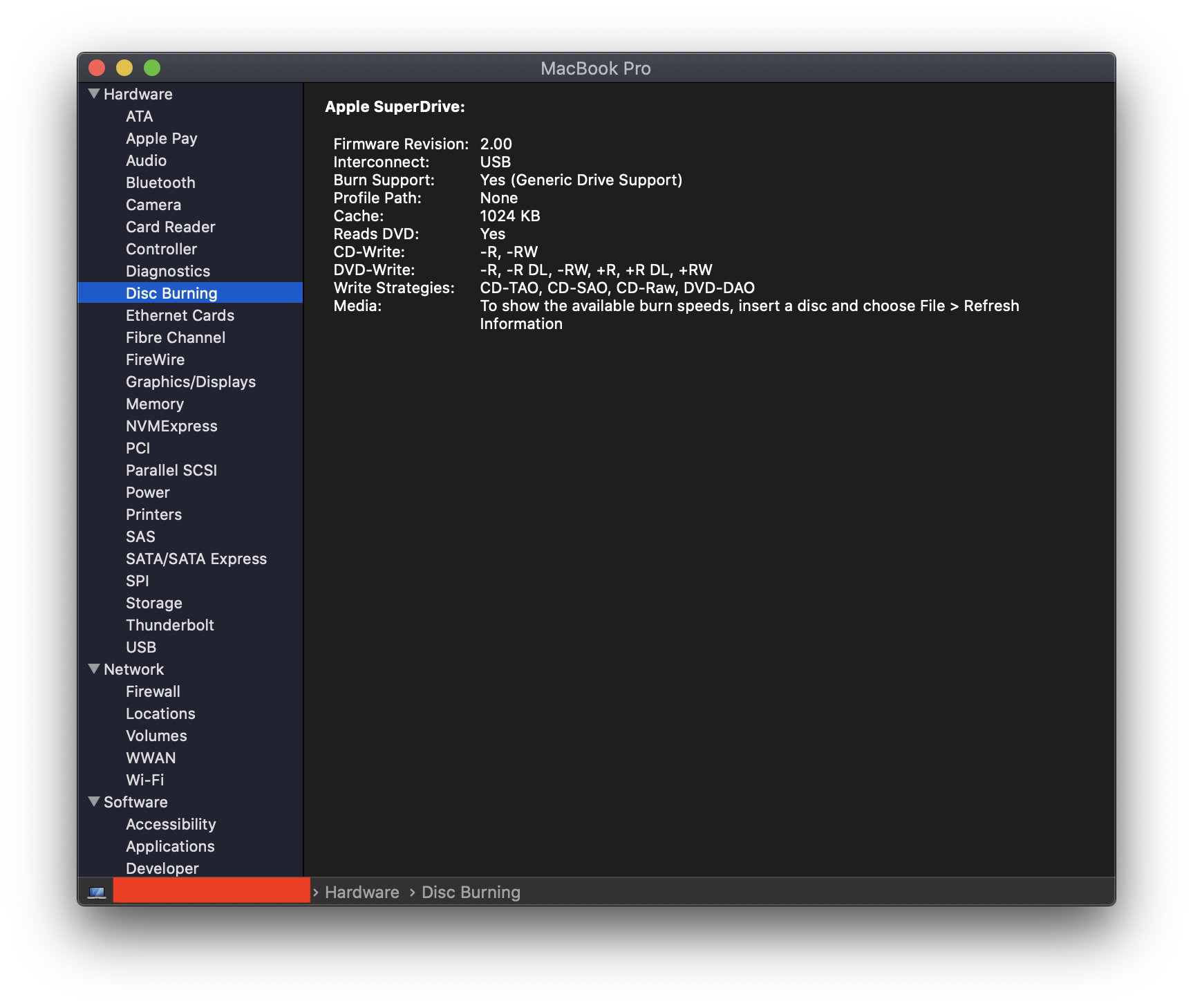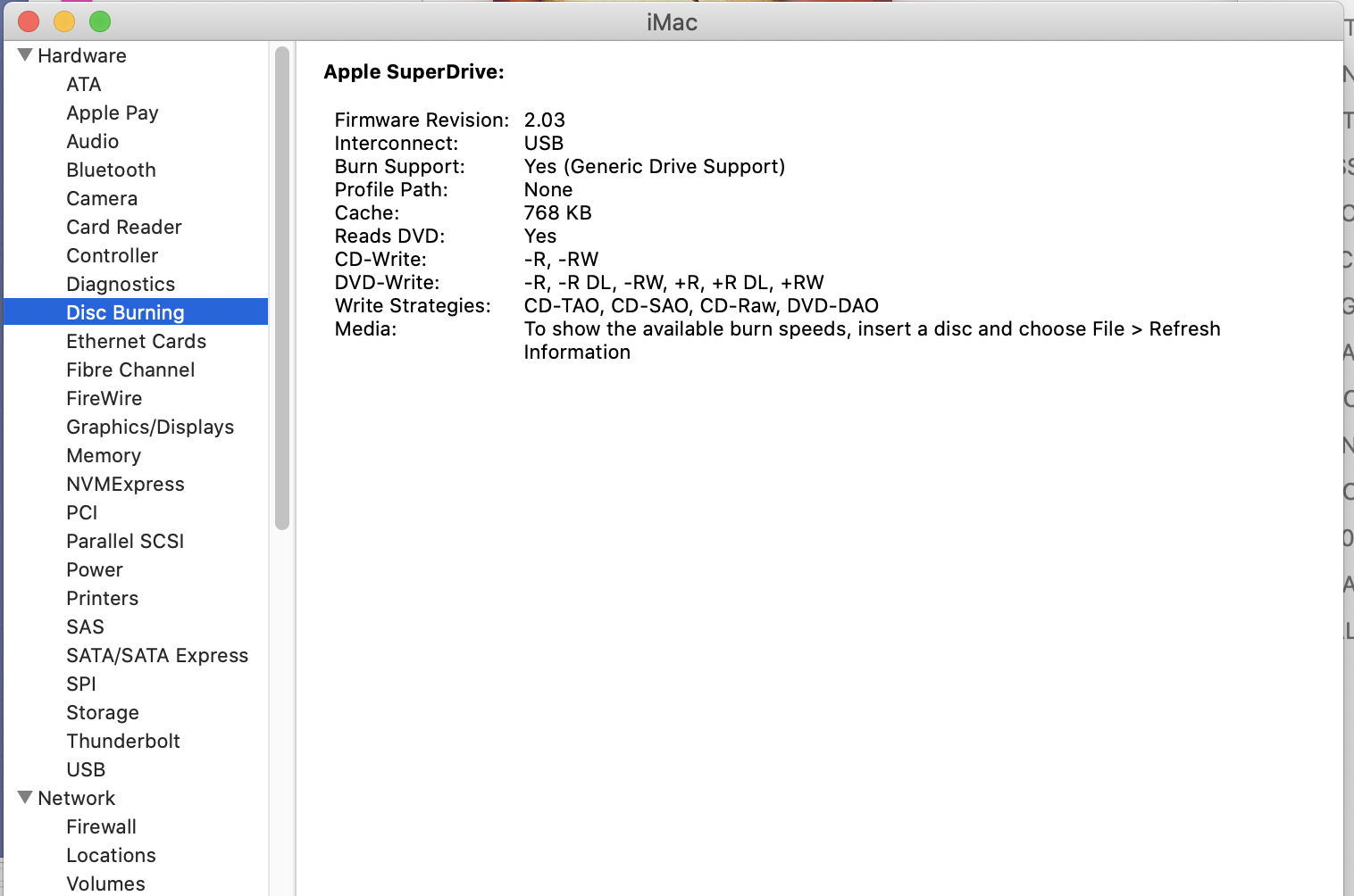 "Superdrive won't accept discs: Thank you for the reply! I followed the suggestion and it does indeed show up. Any other suggestions or does this lead you to believe this could a malfunction with the superdrive itself? It makes a noise when plugged into the USB drive so it isn't completely dead. "