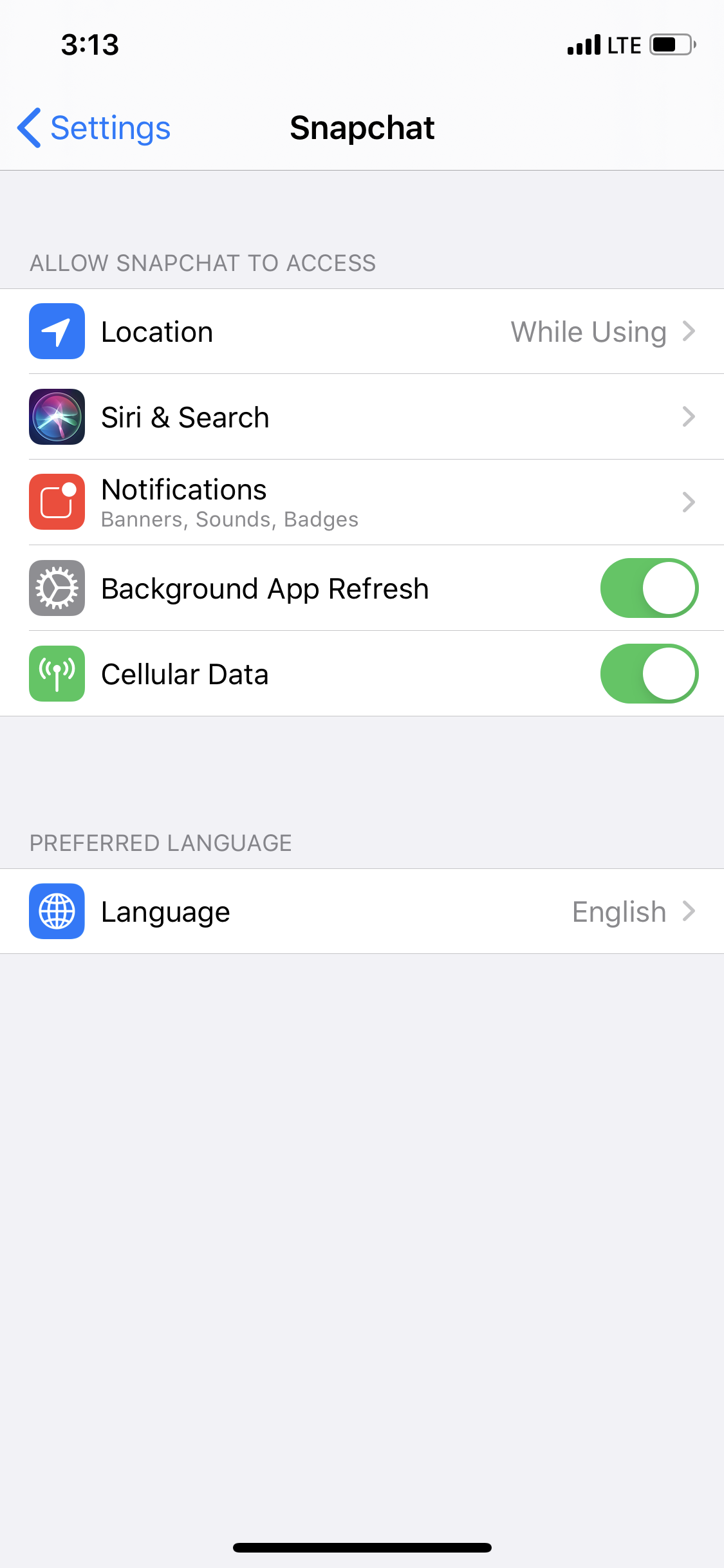 When i open snapchat or instagram, the apps pop up with a sign to enable camera access, but whenever processing to settings, there is no way to enable to camera access. How is this solved?