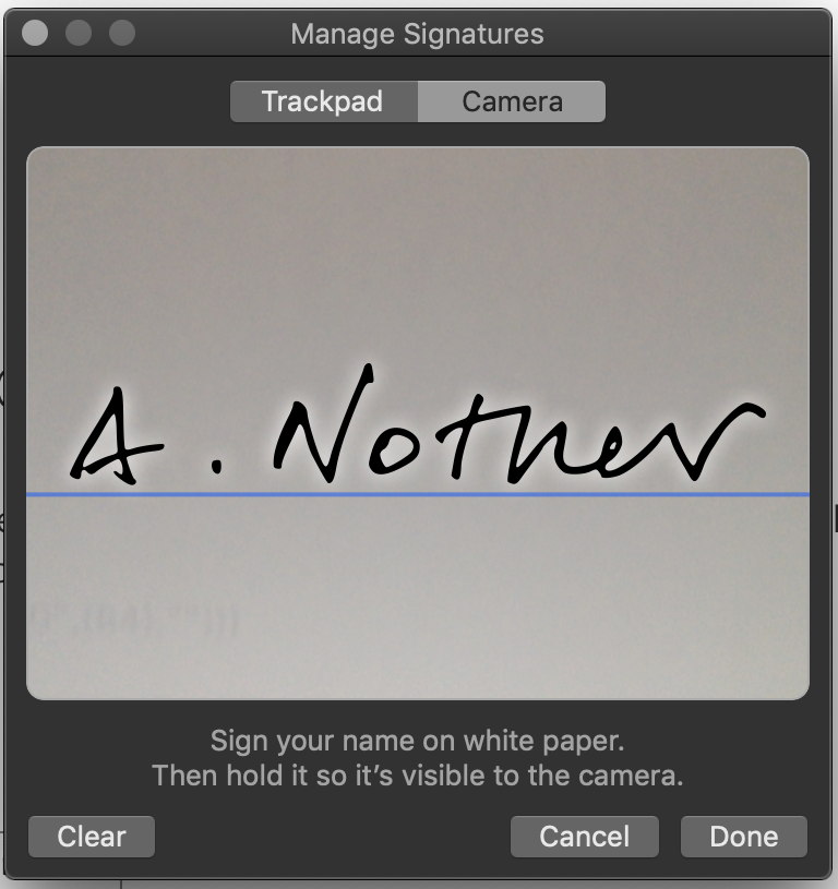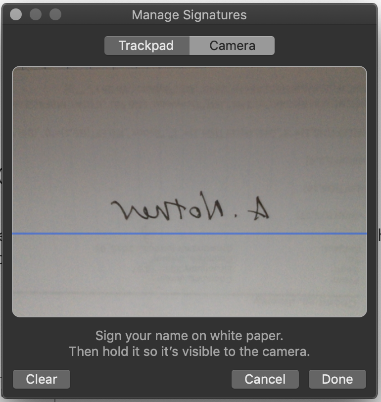 I tried using camera to capture my signature and my Mac isn't capturing it when I hold the paper to the camera. Is there a troubleshooting video on how to correct whatever I'm doing wrong?