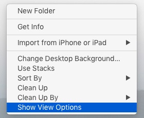 Then control (right) click on your Desktop, hover your cursor over Show View Options