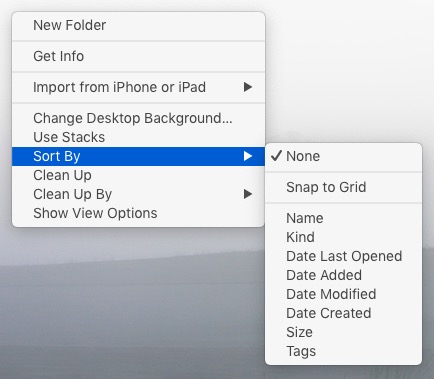 Then control (right) click on your Desktop, hover your cursor over Show View Options